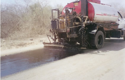 El camión imprimador aplica el producto asfaltico a presión y para ello dispone de una bomba de impulsión, accionada por motor y provista de un indicador de presión. Así mismo, cuenta con un termómetro para el ligante.
